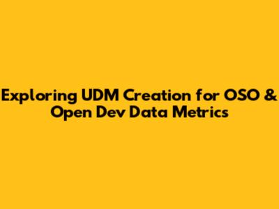 UDM For OSO & Open Dev Data Metrics: A Deep Dive